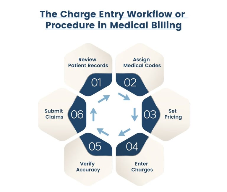 Charge entry is a crucial step in the medical billing process where healthcare services provided to a patient are translated into billable charges. This step ensures that all procedures, treatments, and services are accurately recorded and assigned the correct medical codes (CPT, HCPCS, ICD-10)